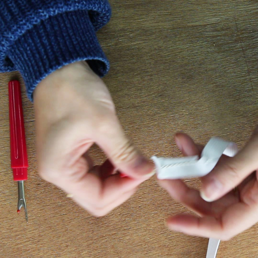 幅のある平ゴムの場合は、リッパーでゴムに切り込みを入れます。