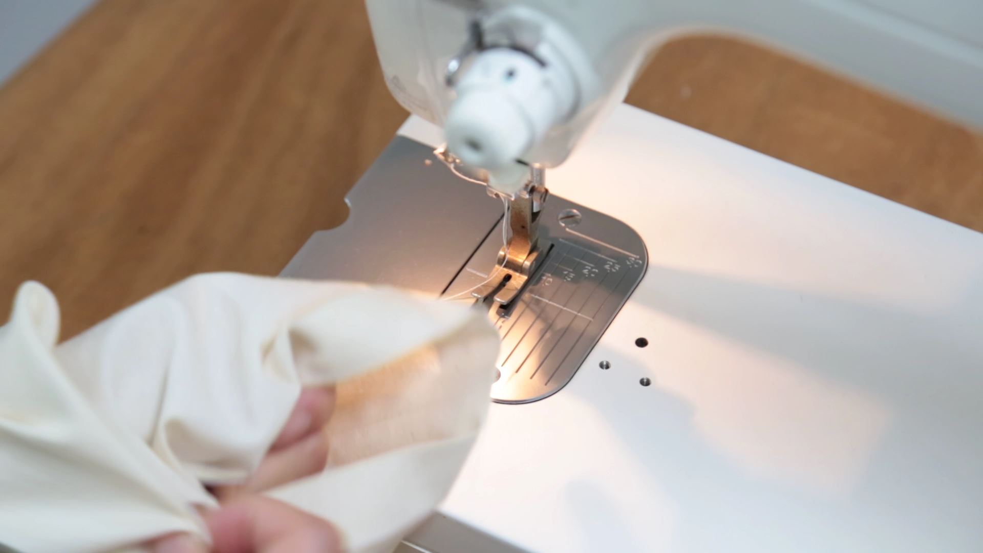 裾や袖口等の筒状の物を縫う時は、ミシンの押え金が邪魔になり縫いにくいですよね。