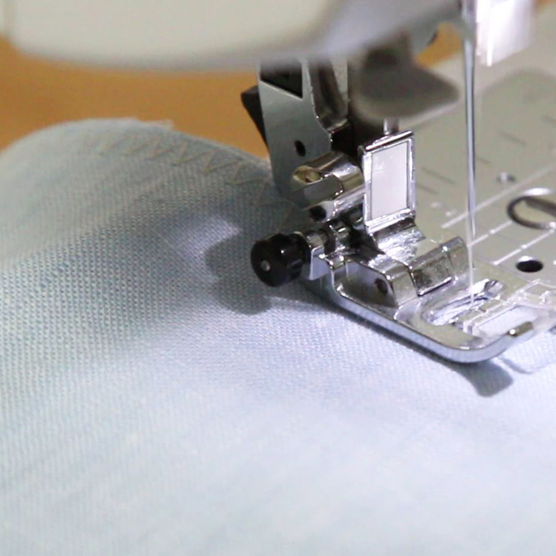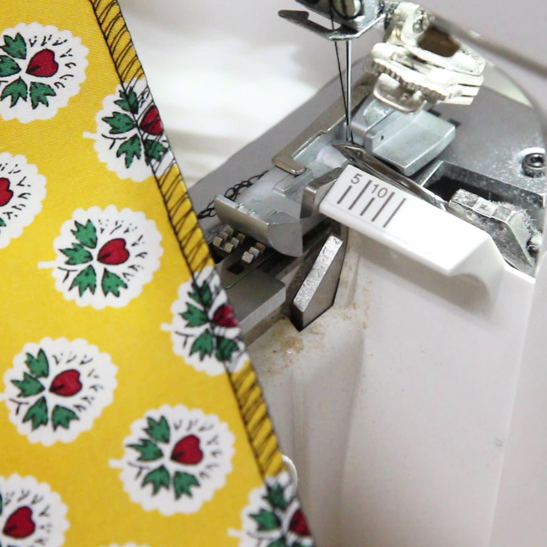 縁かがり専用ミシンで、余分な布をカットしながらキレイに仕上がります。