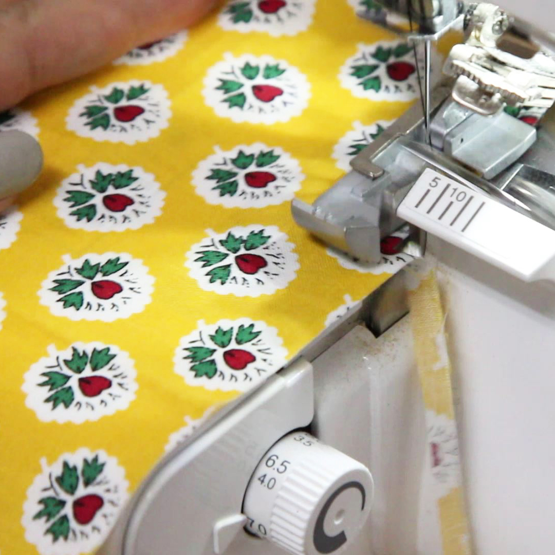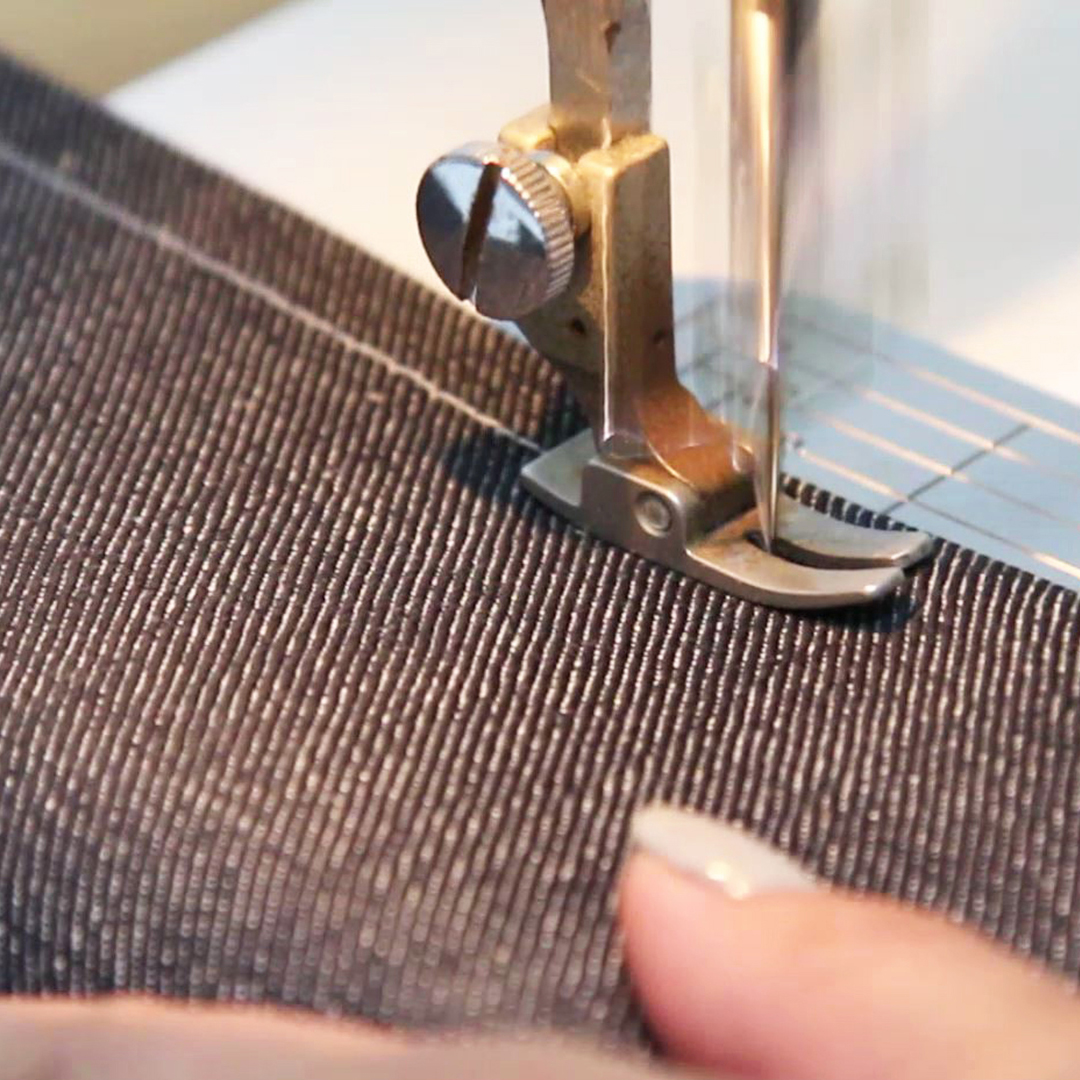 4本糸のロックミシンでは、1台でカットソーが仕上げられます。