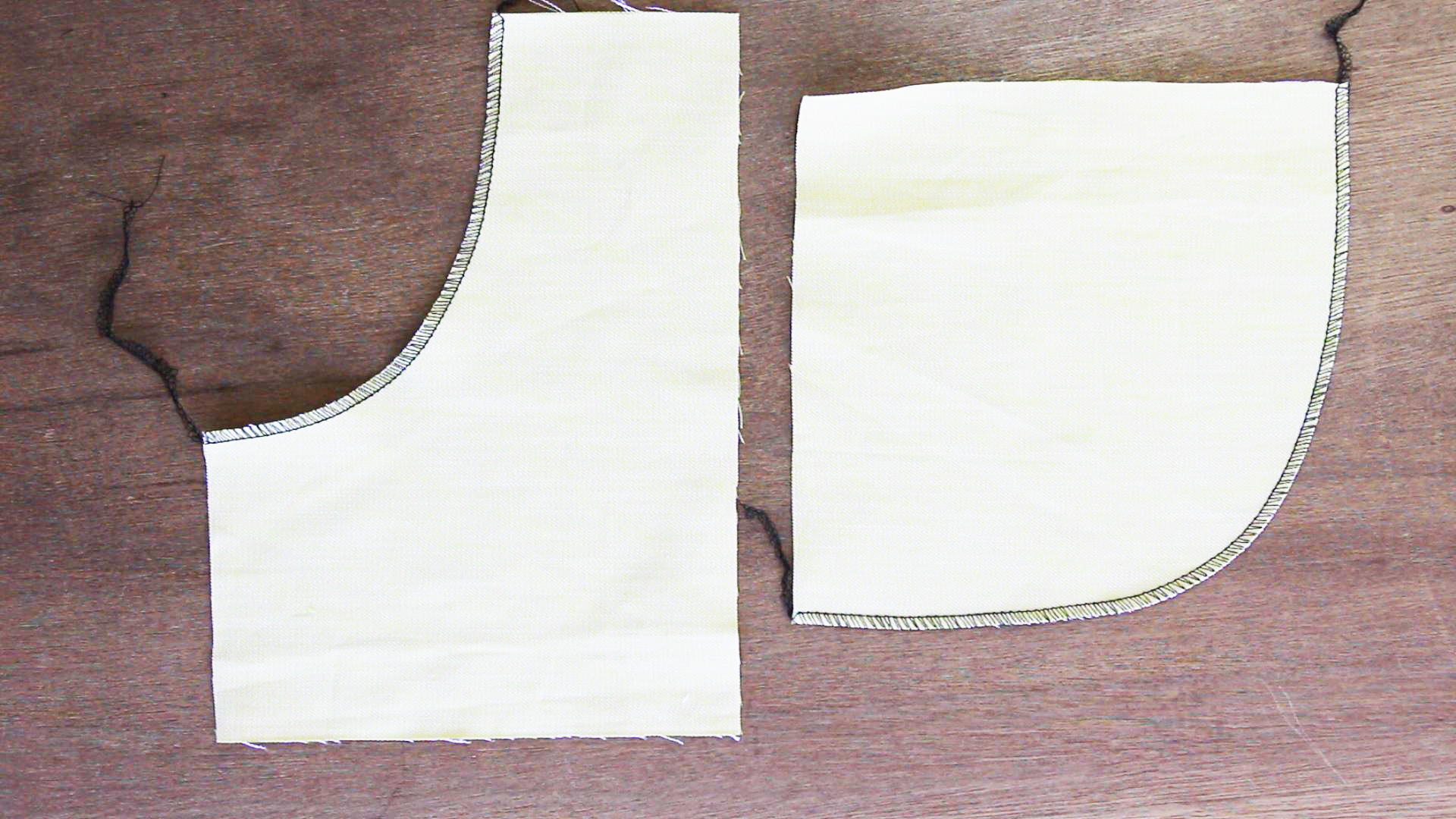このような内カーブを縫う時には、縫地がわに引っ張りながら縫う部分がまっすぐなるようにして