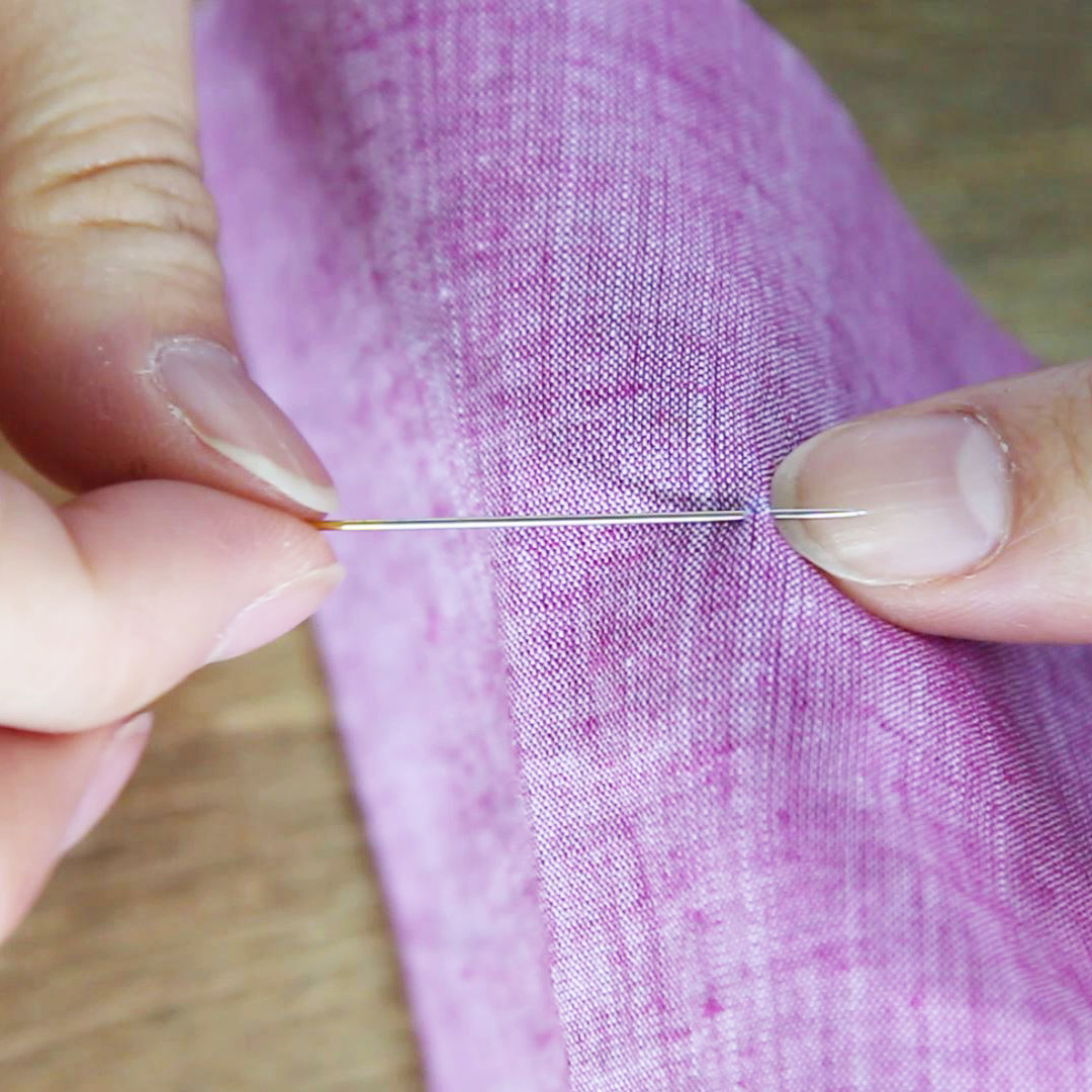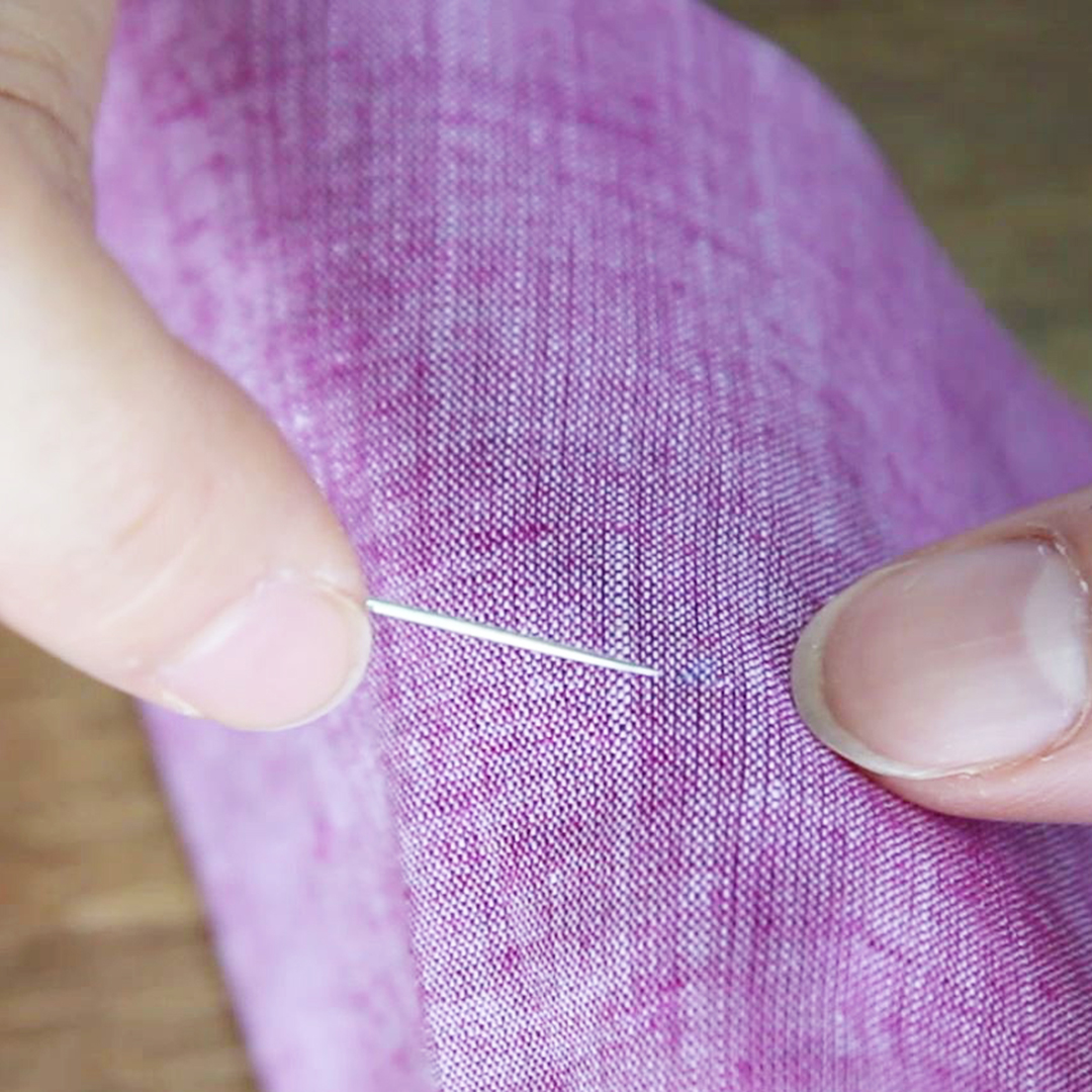 すべての穴を同様に縫い終えたら、ひと針すくいます。