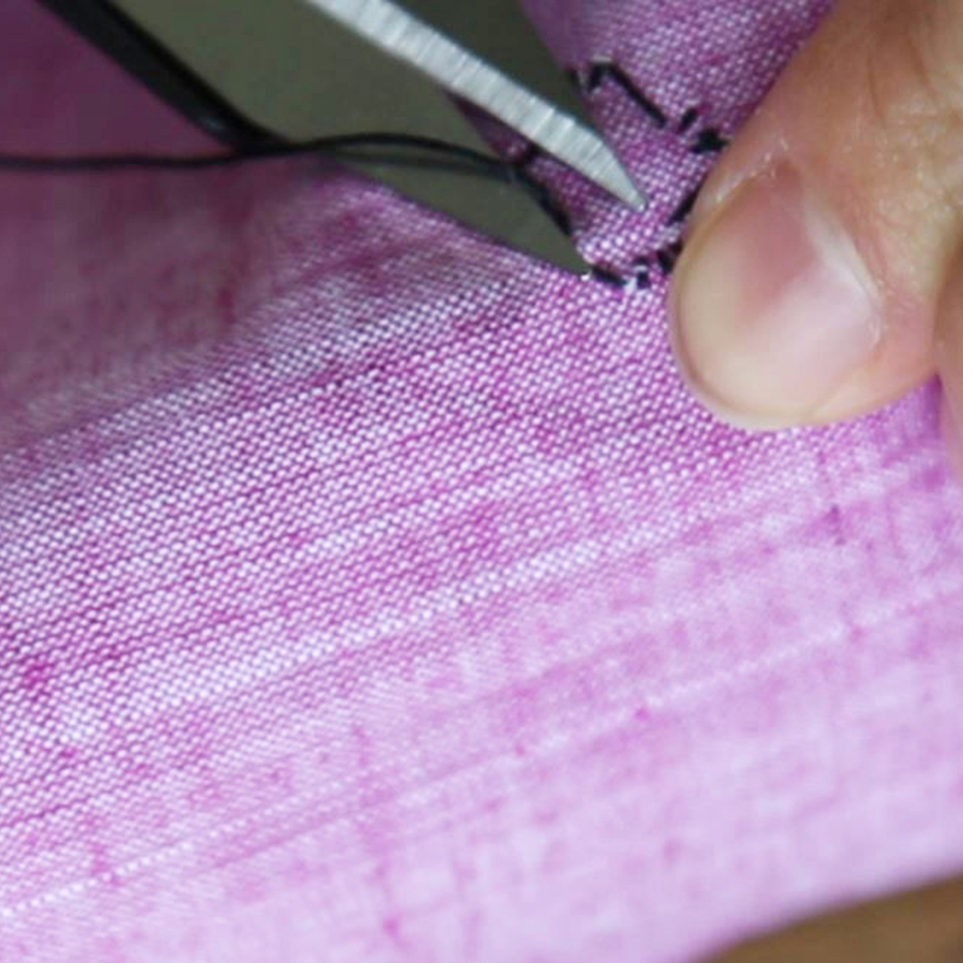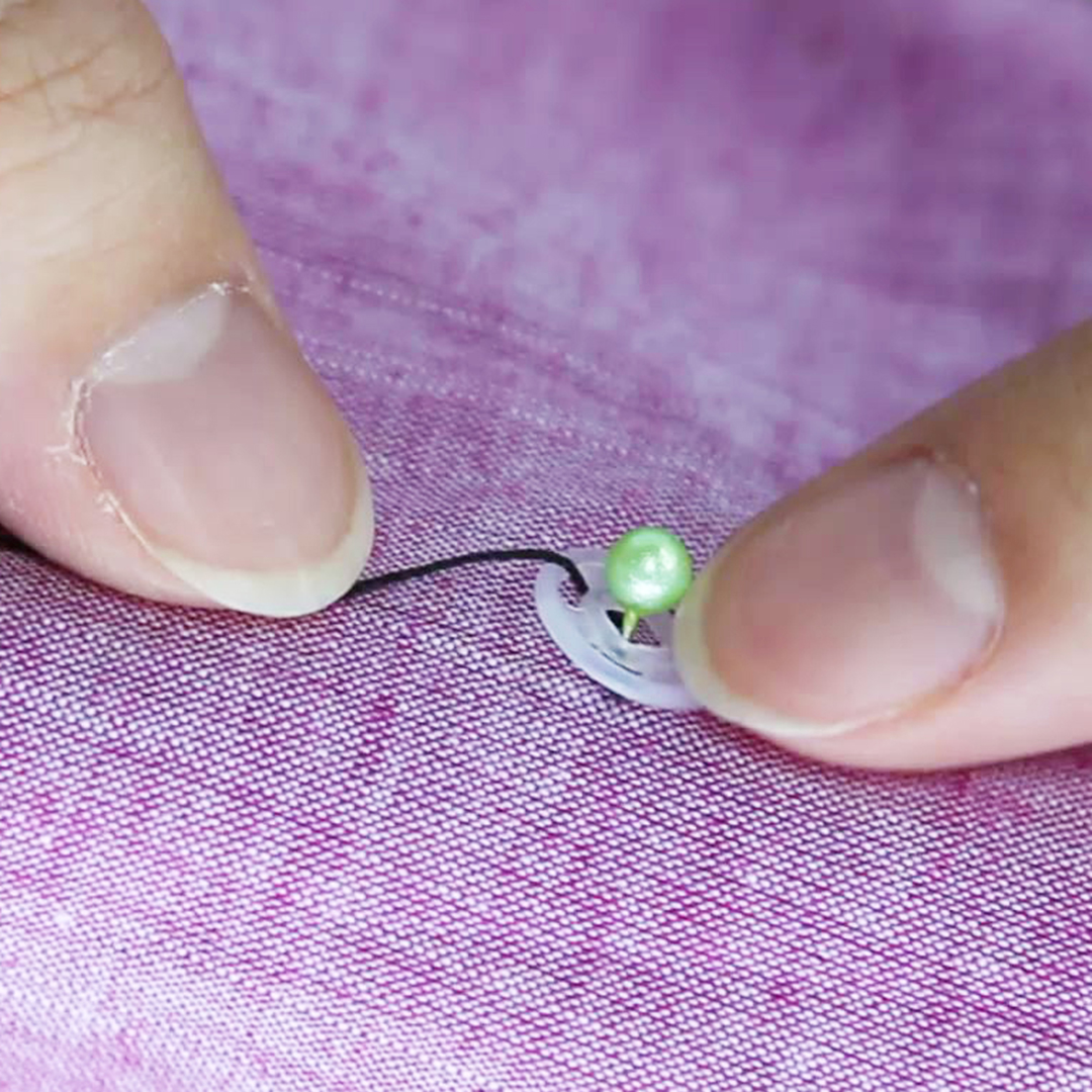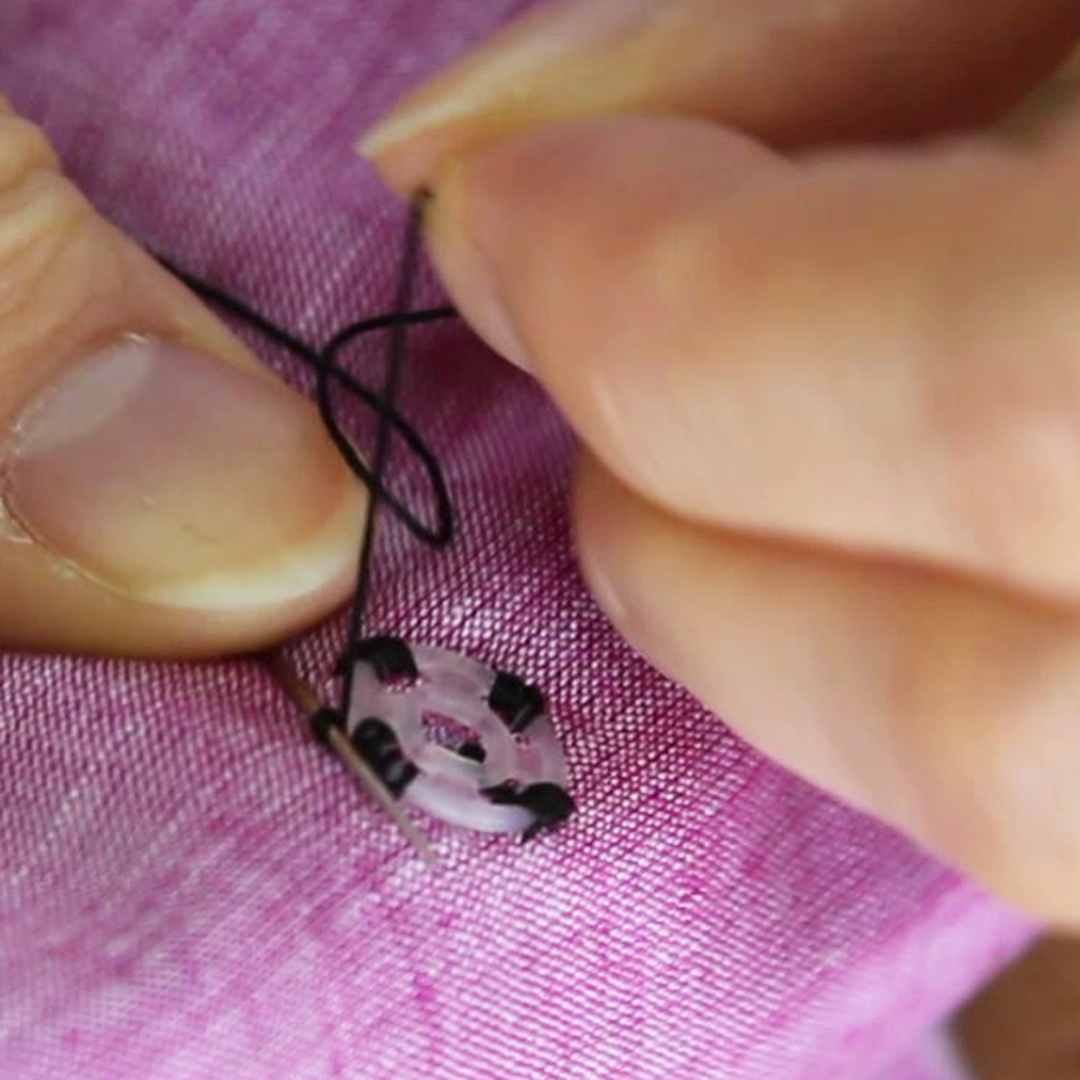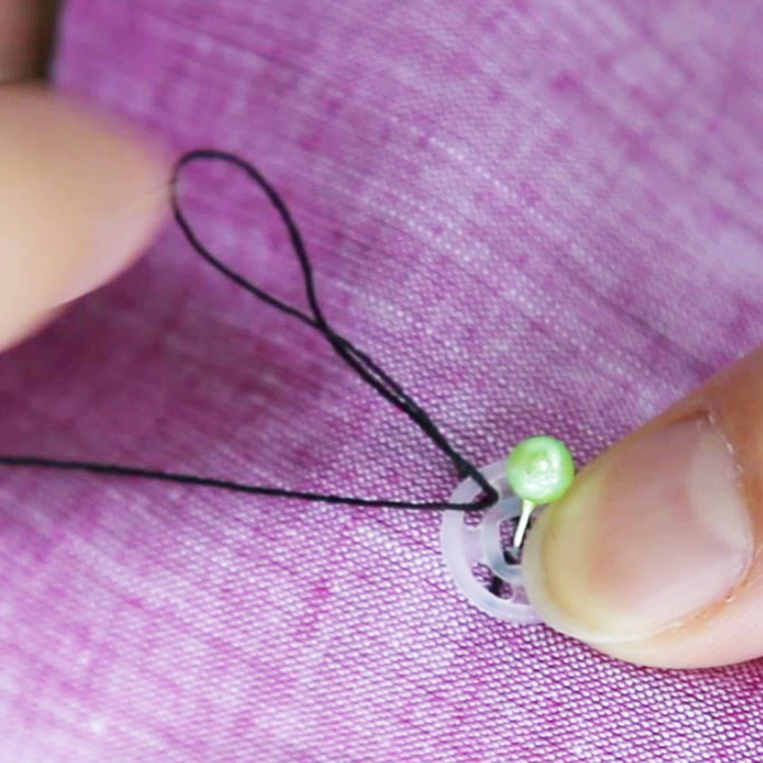 スナップボタンと生地の間に針を通し、糸を切って完成です。